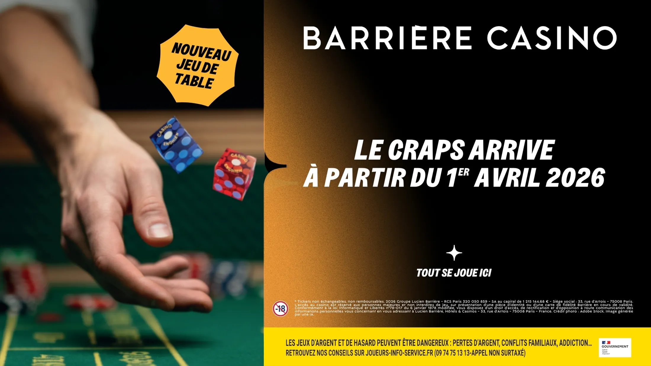 Rendez-vous le 1er avril pour découvrir le Craps et vivre pleinement l'expérience Barrière.